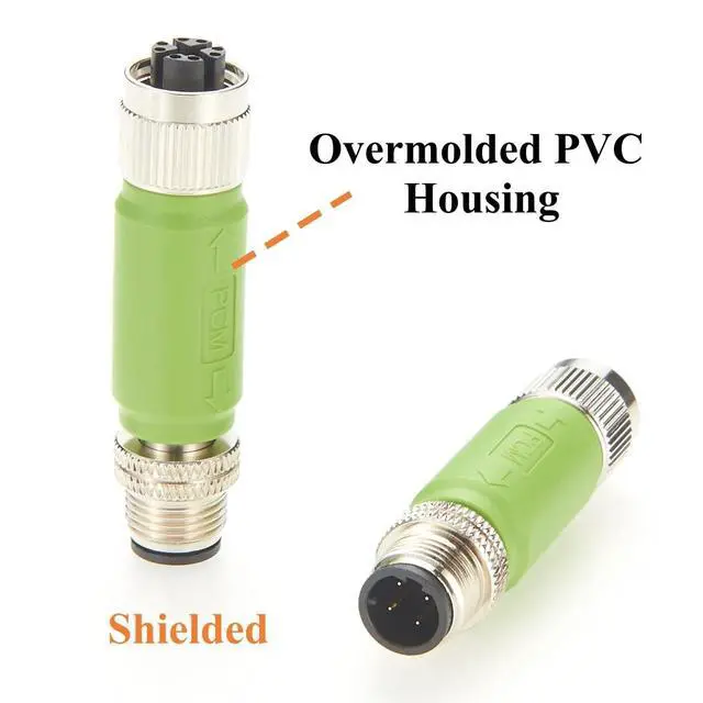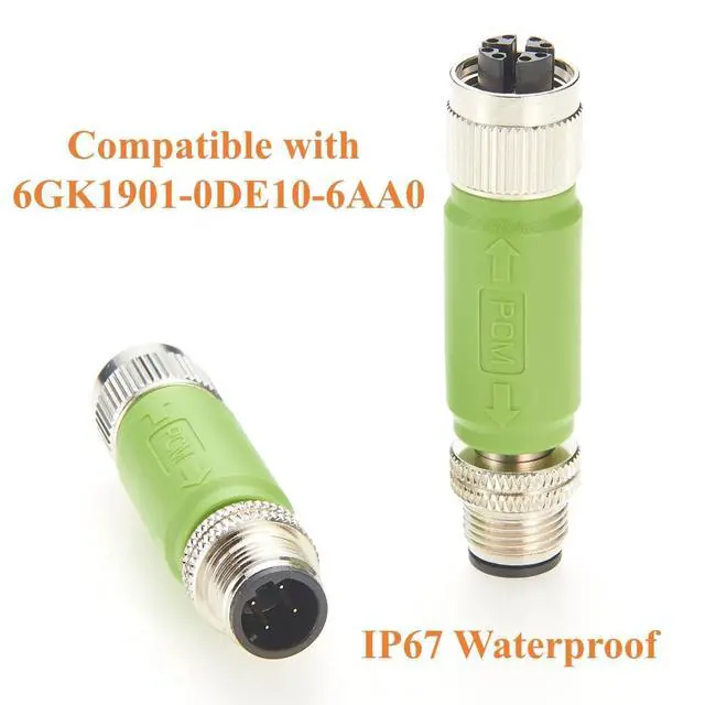 M12 Ethernet Adapter M12 Adapter D-Code Male to X-Code Female, Fully Compatible with Siemens 6GK1901-0DE10-6AA0. Cat5e Ethernet, Support up to 100Mbps Data Transmission. for industrial EtherNet/IP, Profinet, EtherCAT, Modbus-TCP Networks. ^^ IP67 Waterproof & Dustproof M12 Cat5e Ethernet Connector Adapt thread locking mechanism, IP67 Rated when Mated, providing excellent protection in harsh industrial environments. ^^ High Quality IP67 M12 D Code to X-Code Converter, With Overmolded PVC housing for impact resistance and flexibility. Shielded design for reliable data transmission in noisy environments.. ^^ Easy to Use Profinet M12 Industrial Ethernet Adapter, supporting 4-pin to 8-pin conversion, Plug and Play, Connect D-coding to X-coded ports without rewiring.