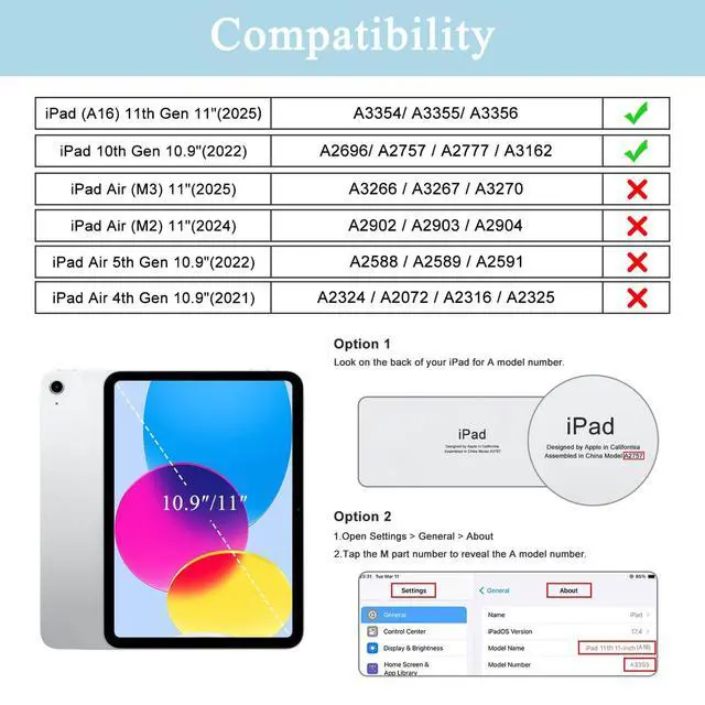 Number: A3354/A3355/A3356) & iPad 10th generation 10.9 inch 2022(Model