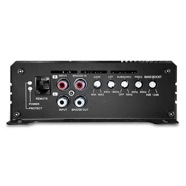 Frequency response: 0 to 320 Hz (Bass Knob Included) ^^ Small footprint and compact chassis makes this mono amplifier easy to install in any vehicle or car audio application; but dont let the size fool you, this 1000 watt amplifier absolutely pounds ^^ Engineered to be the most efficient car monoblock amplifier in its class so that you can get the most out of your vehicles electrical system ^^ MOSFET pulse width modulated power supply and proprietary heat dissipation design will ensure the amplifier for car subwoofers runs cool for even the most demanding playlists ^^ 4-way protection circuitry features high voltage, low voltage, over current, and high-temperature protection; sleep easy at night knowing your class d amplifier car audio is protected