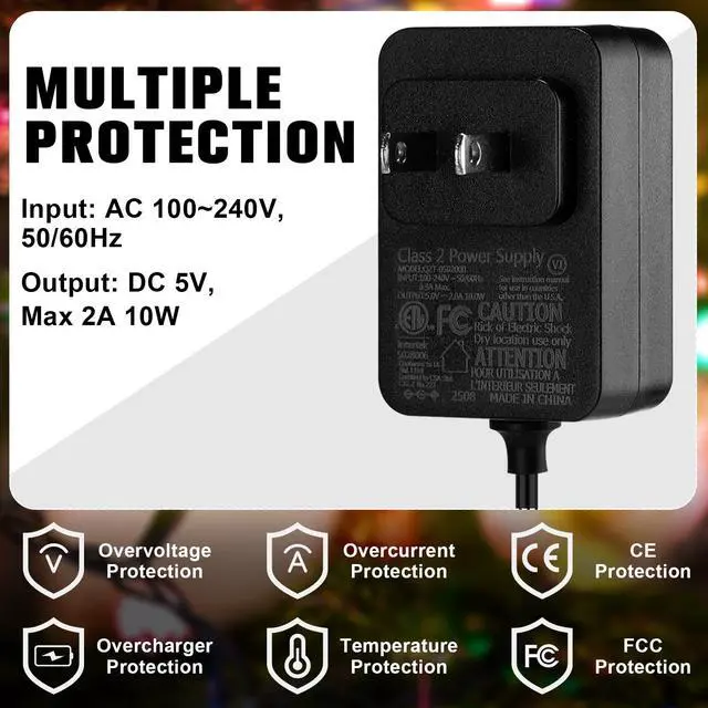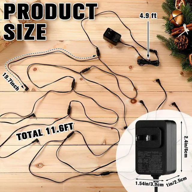 blackSize: a 4.9 ft long charging cable plus 11.6 ft long 7-plug decoration power cordPackage includes: 2 X Power Cord2 X