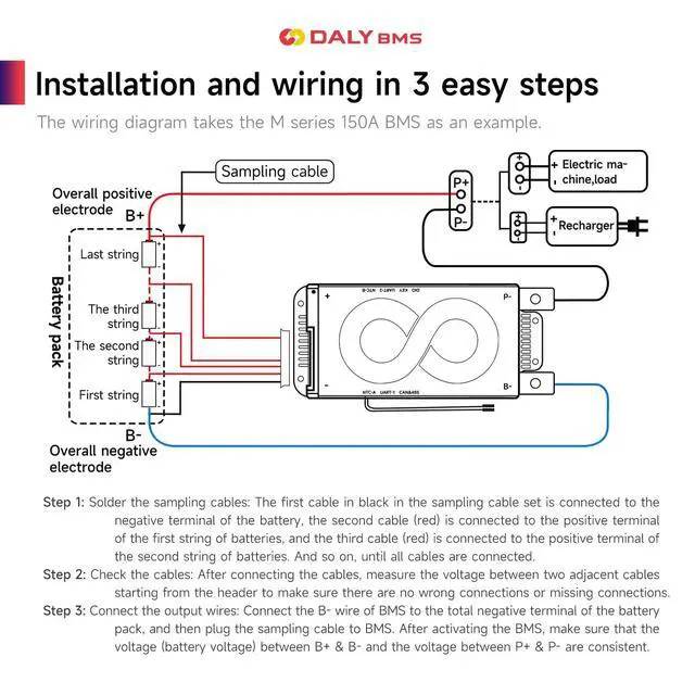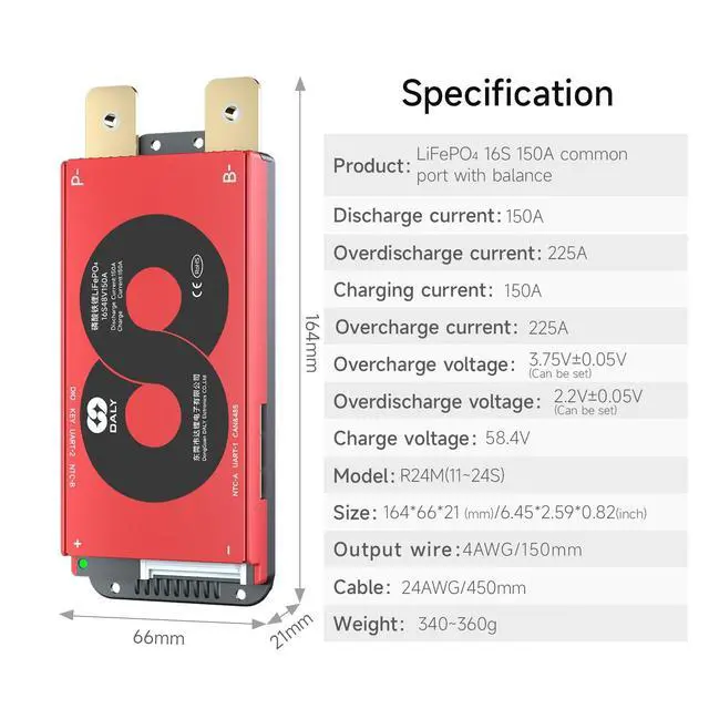 Enhanced Battery Safety: Daly 48V BMS 16S offers protection against overcharging, overdischarging, overcurrent, short circuits and extreme temperature, ensuring the safety and longevity of your battery pack.