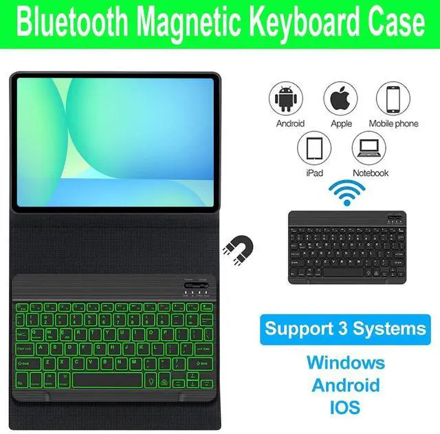 White KeyboardPackage Included: 1*bluetooth Keyboard Case1*Type-C USB Charging Cable1*User ManualKind Tips: The keyboard will automatically sleep if you do not use it within 10 minute. Then press any key and wait 2-3 seconds, the device will automatic return the last time you read.