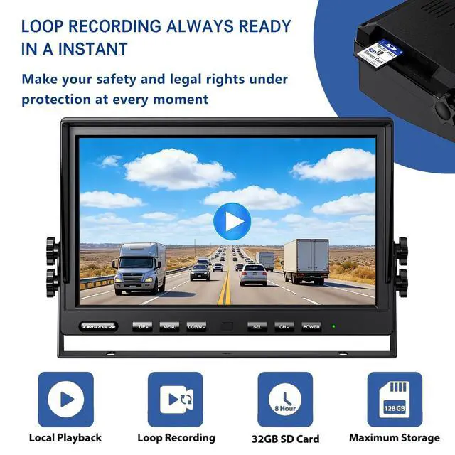 10-Inch Large IPS MonitorFeaturing a vibrant IPS display with native 19201080 resolution, the 10-Inch monitor ensures crystal-clear image quality and accurate colors for a stress-free driving and reversing experience. ^^ Upgraded Wireless Backup Camera TechnologyWith upgraded digital signal transmission, the wireless backup camera system provides a stable wireless connection over distances up to 130 feet in open areas, supporting speeds up to 95 mph. It works seamlessly on vehicles up to 65 feet with virtually no latency. ^^ Multi-View Monitoring & Safe Parking Eliminate blind spots with up to 4 wireless backup cameras (supports single/dual/triple/quad split-screen views).