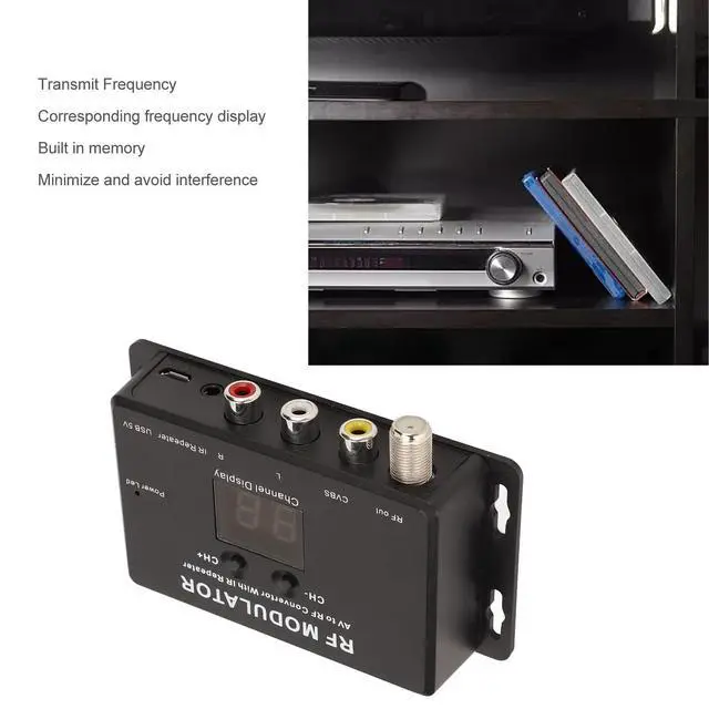 FeaturesSharing Function: The AV to RF TV modulator convertor can share settop boxes and DVDs with several rooms.
