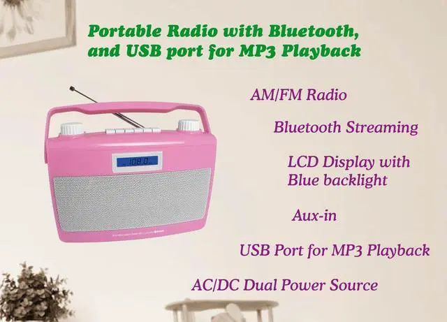 AM/FM Radio with Digital Frequency Display: Simply rotating the Radio Tuning Control, AM/FM radio stations can easily be located. External FM antenna improves the FM radio reception.