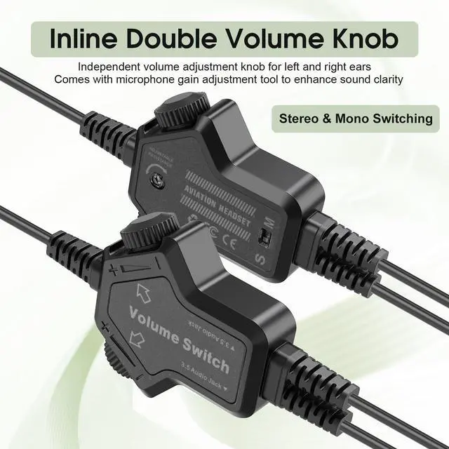 Hear everything clearly. good audio clarity, noise-canceling, effectively filters out ambient noise, allowing for clear communication with air traffic control and my flight instructor. ^^ Comfortable, it adjusts easily, volum control, mono and stereo switch, 3.5 audio input. ^^ Thicker and lighter ear gel pads, filled with silicone material, cooling for less sweating, soft and comfortable, keep away noise much better. ^^ Sturdy and well-made construction promises reliable and durable use. ^^ Fit for universal use, for student pilot, seasoned aviator, professional pilot, flight helicopter driver staff.