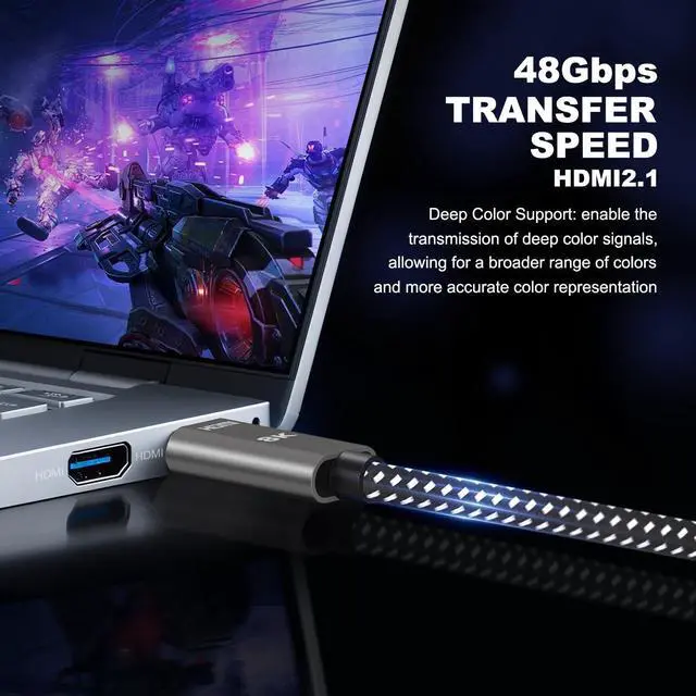 Resolution & Deep: This hdmi 2.1 cable support 10K@60Hz 12-bit, 8K@60Hz