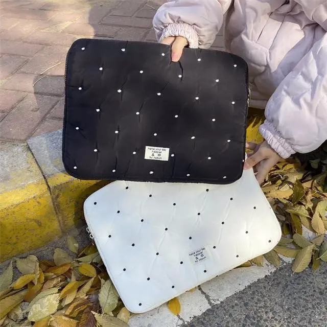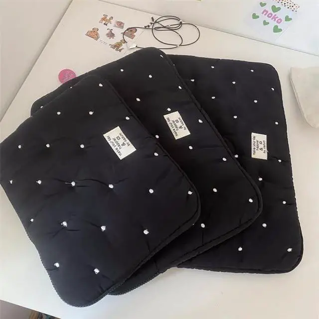 Attria Kawaii Cartoon Polka Dot Puffy Laptop Sleeve Y2K Computer Cover Bag Accessories Pouch Cute Plush Carrying Case (15-15.6 inch,Black)