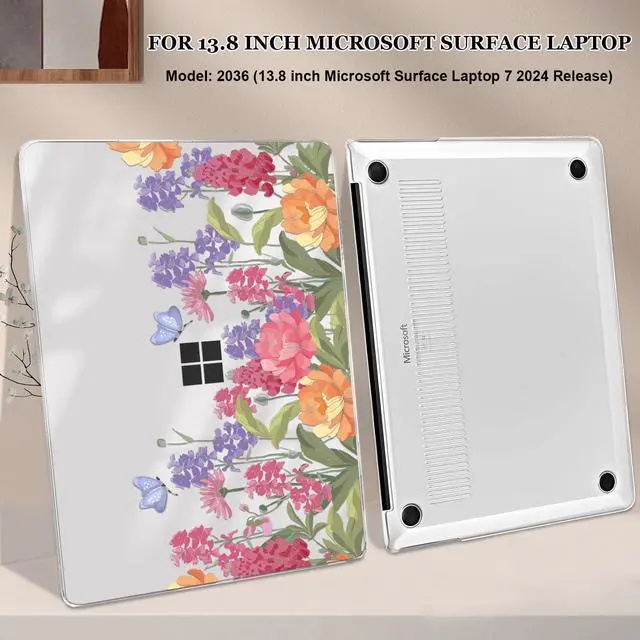 Case: Two-piece snap-on design, easy to install and take off. Precise cutouts and allows full access to all ports. The rubber anti-slip pads on the bottom add stability. Fully vented for safe heat disbursement. ^^ Printed pattern plastic hard shell case offer all-round protection for your Microsoft Surface Laptop 7 Copilot+ PC 13.8 inch 2024 model 2036.