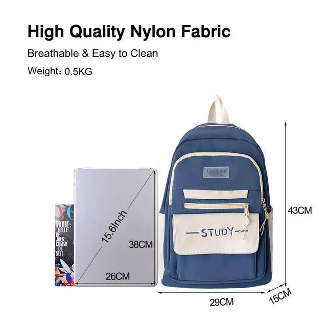 The backpack is made of water-resistant fabric, which can effectively resist sudden splashes and provide reliable protection for your books and laptops. The material is wear-resistant and non-fading. The smooth zipper allows you to open and close easily and quickly take items in a hurry. ^^ Ergonomic, Lightweight DesignExperience unparalleled comfort with this ultra-lightweight backpack, weighing just 0.5 kg. The ergonomically designed, adjustable shoulder straps are generously padded with breathable mesh, effectively reducing pressure on your shoulders and back. The adjustable shoulder straps can adjust the length according to height needs while reducing the pressure on the shoulders when walking.