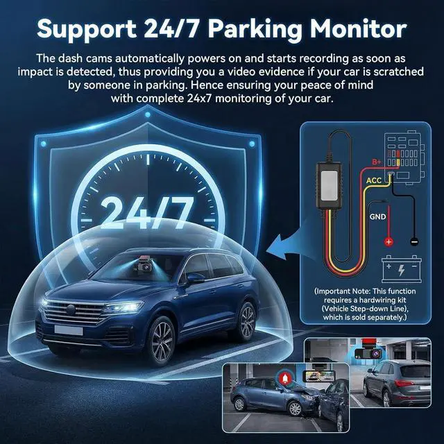 Loop Recording & G-Sensor: The dash cam front and rear comes with Loop recordingensuring continuous footage, while the G-sensor automatically locks collision videos to prevent overwriting