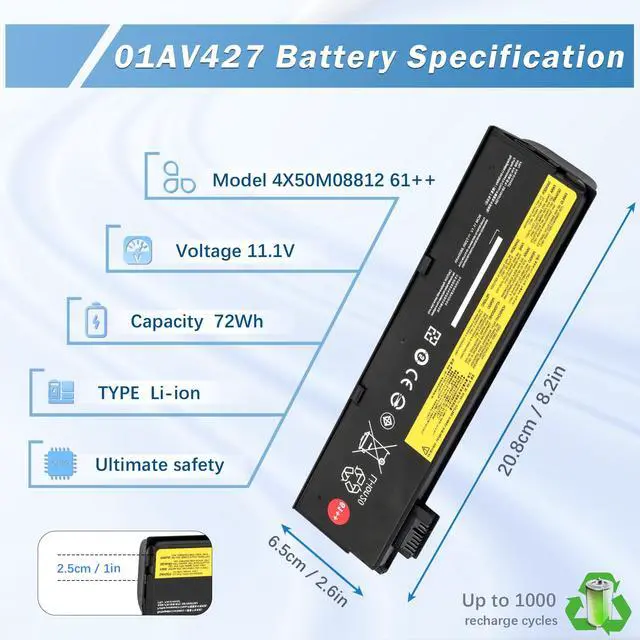 Support Service: 24 hours Online Support for our 72Wh 61++ 01AV427 laptop battery. If you have any questions or concerns, simply click "Ask a question" on our storefront or "contact seller" in your order options. Our dedicated team is here to provide excellent support. Press [CTRL + F] to search your laptop model/part number
