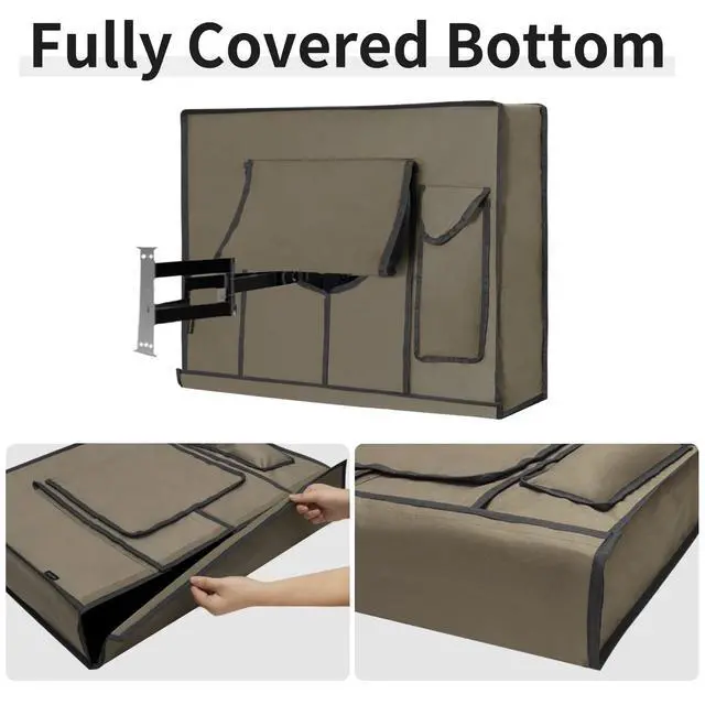 ^^ Sealed Bottom: The cover bottom can be totally sealed by long velcro, prevent the invasion of dust or rain to keep your tv dry and clean. The tv cover fits very well along every side of your tv, guaranteeing 360 full protection.