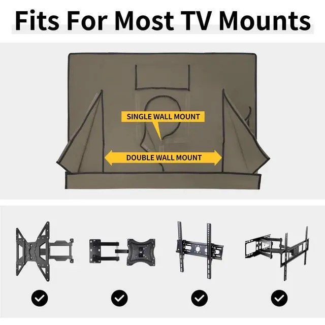 ^^ TV Mount Compatibility: The tv cover is compatible with double wall mounts and single walls mount, ceiling and stands. It is very easy to install and remove with velcro closure.