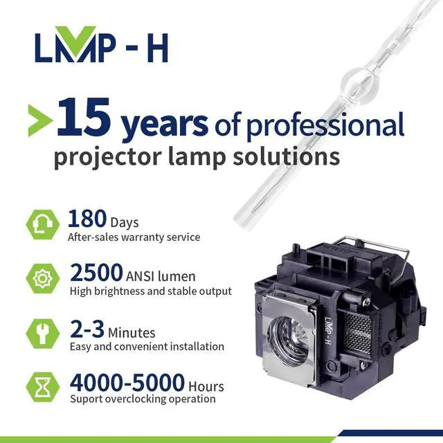 Compatible Modelsfor Epson EB-S7 EB-S72 EB-S8 EB-S82 EB-S9 EB-S92 EB-S10 EB-W7 EB-W8 EB-W8D EB-W8DLW EB-W9 EB-W10 EB-W10/LW EB-X7 EB-X72 EB-X8 EB-X8e EB-X9 EB-X92 EB-X10 EB-X10/LW EH-DM3 EH-DM3/S EH-DM3S EH-DM30/S EH-DM30S EH-TW450 EX31 EX51 EX71 EX3200 EX5200 EX7200 HC705HD EMP-S7 EMP-S8 EMP-S9 VS200 PowerLite Home Cinema 705HD V13H010L54/V13H010L55/V13H010L56/V13H010L58 Projector lamp bulb ^^ Compatible Modelsfor Epson Moviemate 60 Moviemate 62 Moviemate 85HD Powerlite 1220 Powerlite 1260 Powerlite 79 Powerlite H335A Powerlite S10+ Powerlite S7 Powerlite S8 Powerlite S8+ Powerlite S9 Powerlite W7 Powerlite X9 H309C H310A H310C H311B H311C H312A H312B H312C H319A H327A H327C H328A H328B H328C H331A H331C H335A H367A H367B H367C H368A H369 H369A H375A H375B H376B H391A H412A V13H010L54/V13H010L55/V13H010L56/V13H010L58 Projector lamp bulb ^^ LMP-H projectors' bulbs are made of the highest quality materials and have the same functions as your original bulbs.