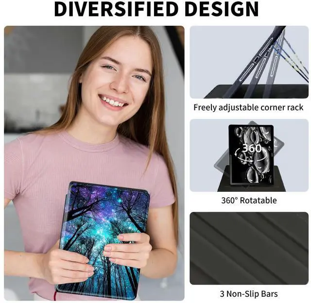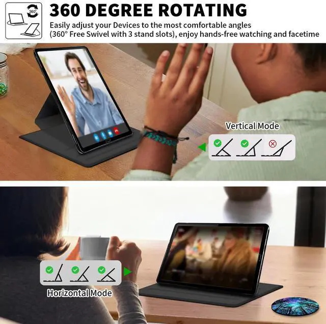 Dual Protection: Our case samsung tab s9 fe is composed of a TPU honeycomb grid pattern cushioning inner shell with strong shock absorption and soft pu leather case. TPU material has good elasticity and wear resistance, travel unparalleled protection your tablet in the event of a hit or accidental bump or drop. Besides, for samsung tab s10 plus case will not weigh too much so that you can carry it easily ^^ 360 Degree Rotating &