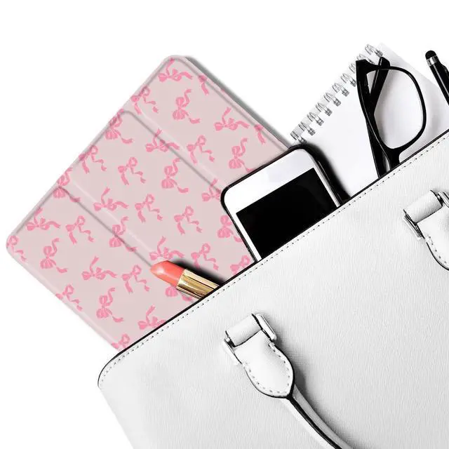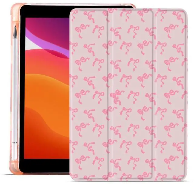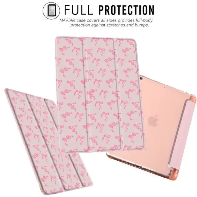 MAYCARI Pink Small Wreath Bows Fashion Case for iPad 10.9 inch 2022 with Pencil Holder, Original Pattern iPad 10th Generation Soft TPU Back Protective Cover Shell, Auto Sleep/Wake Slim Shell - Pink