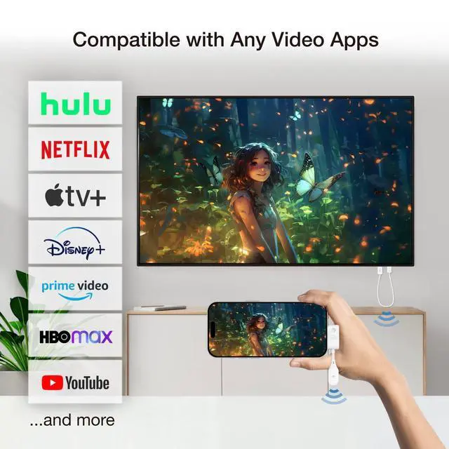 ^^ Mirror or Extend Mode - Mirror videos to a TV or extend works to another screen. Multitask wirelessly like a pro. ^^ Impressive Compatibility - Watch your favorite videos, games or presentations from all popular devices.