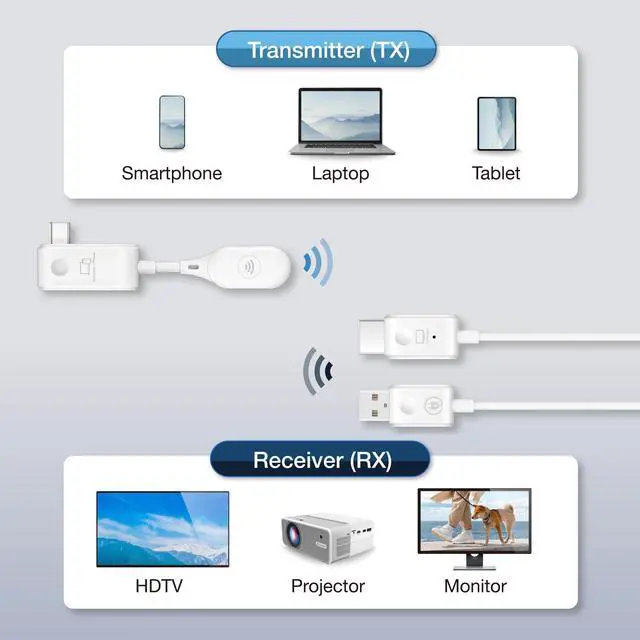 The Simplest Wireless Display Solution - Compact and Portable. Each kit weighs less than 80g. ^^ Make HDMI Wireless - Get rid of cables and limitations. Mirror or extend your screen wirelessly with the HDMI or Type-C DP transmitter and receiver kit. (Please select the version correctly. ) ^^ Please make sure your Type-C device support DisplayPort Alt Mode before purchase. ^^ Plug and Play - Simply plug in and you are all ready. Enjoy immediate connection without any other setup. No app installation and Wi-Fi network needed. Fast and straightfoward.