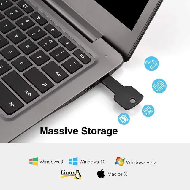 Plug and workSimple Plug and work, no need to install any software. Support windows 7 / 8 / 10 / Vista / XP / Unix / 2000 / ME / NT Linux and Mac OS; Compatible with USB 2.0 backwards USB 1.1. ^^ Reliable and Secure StorageReliable and secure storage, to protect your sensitive and important files, you can bring it everywhere with confidence. ^^ Fashion and ConvenienceUnique Key shaped design, Aluminum alloy housinglight weight, portable, keep your digital world in your pocket or your key chain. ^^ High Speed TransmissionFast Data transmission speed, Suitable for storing digital data for school, business or daily usage.