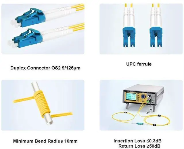 • Duplex Connector OS2 9/125m,Insertion Loss0.3dB,Return Loss 50dB. Patch Cable singlemode OS2 fiber is specially designed for fast Ethernet, Fiber Channel, Gigabit Ethernet Speeds,Local Area Networks, Data Center, Premise installation, Wide Area