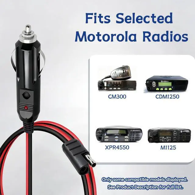Feature: All of our items are Brand new and never usedA high quality cable to extend your power leads on ham radio transceiver or other applianceHigh quality, cigarette lighter plugCigarette lighter plug has red indicator lightApplicable radio: CDM1250 CDM1550 CDM1550 CDM750, Mototrbo XPR4300 XPR4500 XPR4550 CM140 CM160 CM200 CM300 CM340 CM360 GM3188 GM3688 GM Data Box GM1280 GM140 GM160 GM300 GM338 GM340 GM360 GM380 GM398 GM640 GM660 MCX760 MCX780 M10 M120 M130 M208 M1225LS M216 M1225 PM400 PRO3100 PRO5100 PRO7100 SM50 SM120 EM200 EM400 Spectra Radius CM200D CM300DPackage: 1 X power cord cable