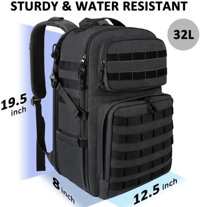 Molle System: 17 in laptop backpack for men's front and both sides have molle webbing, throughout for attaching additional tactical pouches, hooks or other small items. Molle system has been essential for first responders, patrol, soldiers, public service workers. This laptop backpack large capacity can be used as work laptop backpack, safe army military backpack, outdoor range travel bag ^^