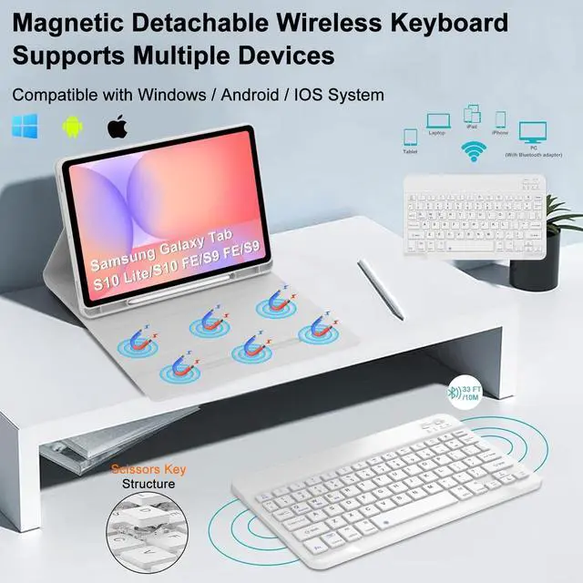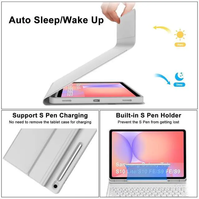 The inner layer of the case is padded with a honeycomb grid pattern, which releases 80% more heat than other tablet cases, preventing overheating to prolong the life of your galaxy tab S10 lite Tablet. Built-in S-Pencil holder, cap and adapter slot, grab your S-Pencil for easy portability and use. ^^ Convenient Pencil Holder - Designed with pencil holder and pen slot on top, the cutout in the back makes it easy to take the stylus out for use. Well designed and BT keyboard is very responsive. There are no delays when you are typing ^^ Premium Material - for Samsung keyboard case is made of good quality PU.