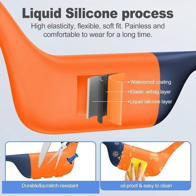 IP68 Deep Waterproof Bluetooth bone conduction headphones exceed traditional limitations, it using the highest waterproof level IP68, this headphone can use in deep waterproof support swimming, surfing, diving and other sports, you will enjoy clear and stereo sound underwater. In addition, bone conduction headphones are perfect for running, skiing, hiking, camping, skating, and other indoor or outdoor sports. ^^ Bone conduction headsetThis swimming bone conduction headset is different from traditional wired earbuds and earplugs, when you wear bone conduction headset, the sound will enter directly into the cochlea through the vibration of the sound, The open wireless sports headset helps you stay aware of your surroundings and avoid dangers while listening to music.