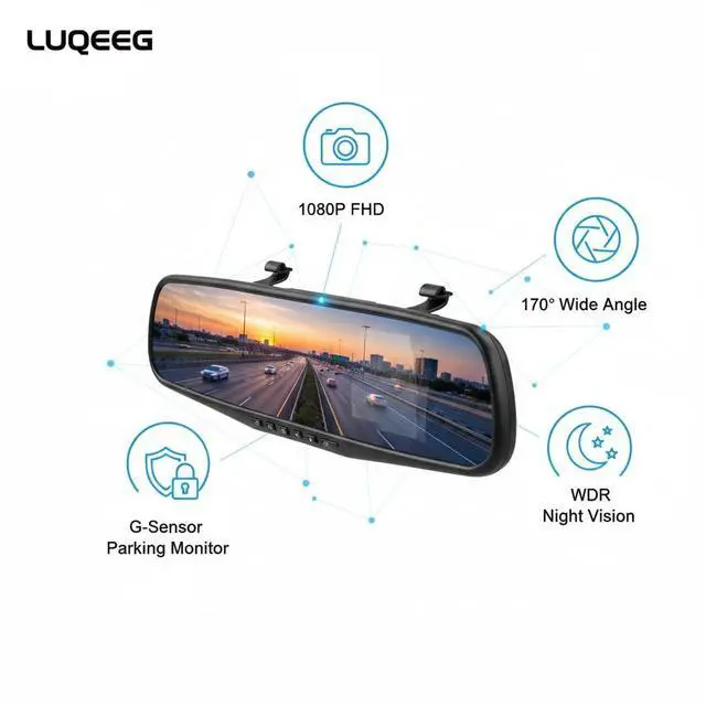 List: 1 x Rearview Mirror Dash Cam1 x Cigarette Lighter Power Cord1 x Camera1 x Camera Cable1 x Fasteners2 x Rubber Mat2 x Screw1 x Manual