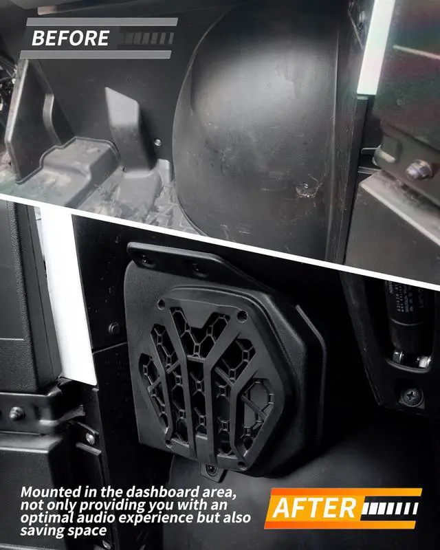 Space-Saving Design: These pods securely mount your speakers underneath the dashboard, effectively utilizing otherwise wasted space, not only delivers optimal sound projection towards the occupants but also keeps valuable floor and storage areas completely free, ensures your audio system stays firmly in place even on the roughest trails, providing peace of mind alongside superior audio ^^ Enhanced