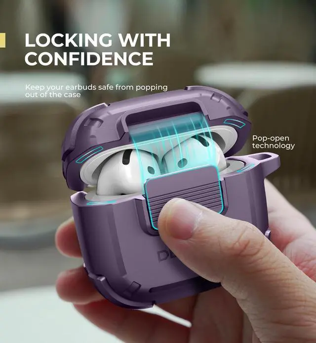 ^^ Secure locking mechanism: Equipped with a sturdy pop-open locking latch, this shockproof case keeps your AirPods 4 securely in place, ensuring they wont fall out even during the toughest drops and bumps.