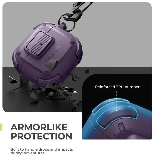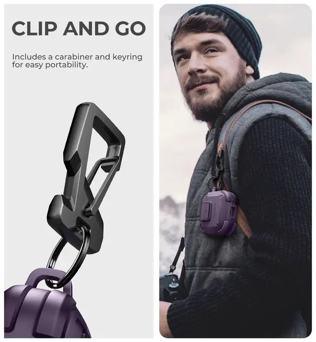 Safer and easier to carry: With a robust, anti-rust carabiner and keyring, this rugged case easily attaches your AirPods 4 to your backpack, belt loop, keychain, or anything else for instant access on the go.