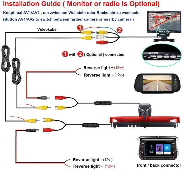^^ Built-in LED LightThe camera's built-in LED light can provide additional illumination in low-light conditions, helping you clearly see the road and obstacles behind your car at night or in low-light conditions, effectively avoiding potential hazards. ^^ Adjustable Lens AngleThe lens angle of the rear view camera is adjustable, allowing you to easily adapt the perspective to different vehicles and loading situations, allowing you to better observe the situation behind the vehicle. ^^ Plug and Play, Tailor-made models for original carsReplacement for Ford Transit Connect 2 II /XL Cargo Titanium Passenger Van Wagon Brake Light Third Camera (2014-2022); Brake Light / Stop Light / Brake Light / Stop Lamp / High Level Light; Ford Transit Connect Tourneo PJ2 Van V408 Box Sedan 1.5 TDCi 2013/02-2024/12; Dual Rear View