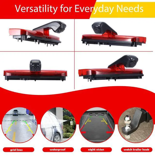 18mm Lens Pro HD Image Quality1280*720 pixels, 1000 TV lines. Brake Light Camera Brake Light Rear View Camera. This rear view camera uses high-resolution sensors and lenses to provide clear and detailed images, allowing you to accurately determine the situation behind your vehicle. ^^ Dual Lens Brake Light Rear View CameraThe camera features an ultra-wide field of view, providing a clear, wide-angle image display. This wide field of view significantly improves visibility behind the vehicle and ensures safer driving. It's ideal for parking, with a wide viewing angle and no blind spots, making parking easier.