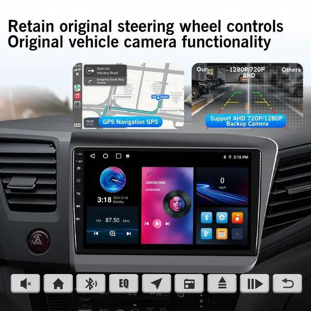 Steering Wheel Control: Honda Civic 2012-2015 car stereo supports rear camera video input, making your reversing & parking easier. Support original steering wheel control, allowing you to use and control the car radio via steering wheel (Backup Camera Included) ^^ AM/FM/RDS, 32EQ