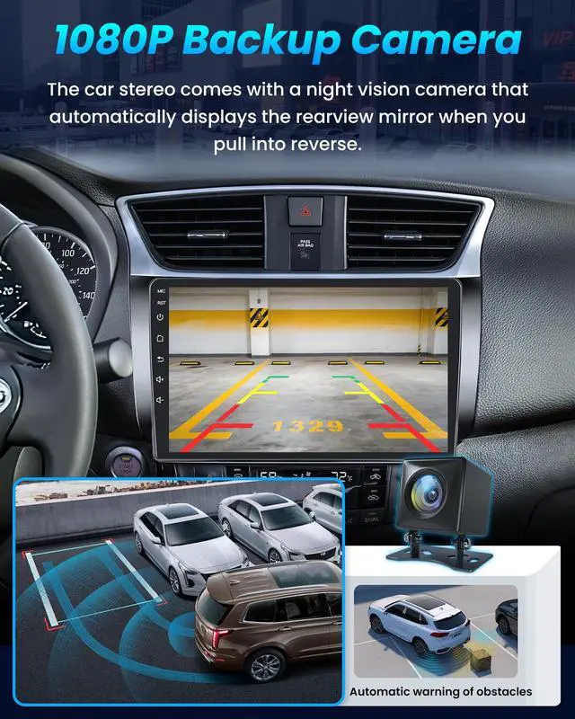 WiFi Connectivity: Pre-installed Google Maps with real-time traffic updates (WiFi required) and offline navigation. Download apps like YouTube/TikTok with 64GB storage for entertainment. ^^ 1080P AHD Backup Camera & Steering Wheel