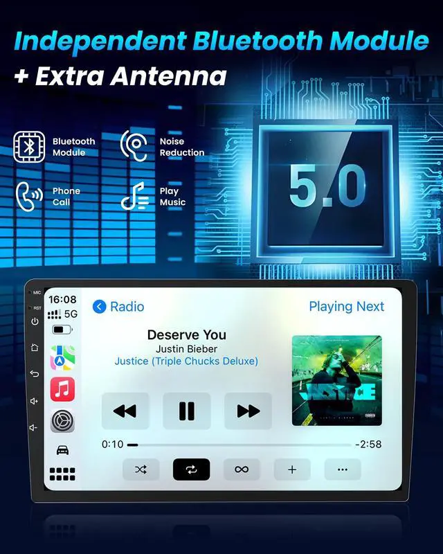 Voice Control: Seamlessly connect via Bluetooth or USB. Use voice commands ("Hey Siri" or "OK Google") for hands-free control, ensuring safer driving. ^^ GPS Navigation &5G