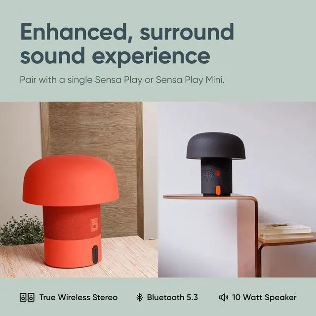 Danish Design & Superior Sound Elevate your space with a music lamp that's a balance of Scandinavian aesthetics and immersive audio. Featuring modern curves and premium materials, this Bluetooth light creates a perfect ambiance. ^^ Customizable Lighting Set the mood indoors or outdoors with this mood lamp that has adjustable brightness levels to customize the ambiance. Whether its a cozy night in or an outdoor gathering, this rechargeable lamp delivers an inviting glow. ^^ Bluetooth Speaker Pairing Seamlessly pair this 10-Watt speaker with another Sensa Play outdoor speaker for a high-quality stereo sound experience.