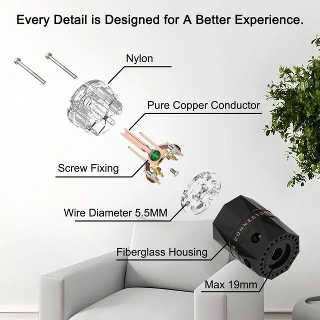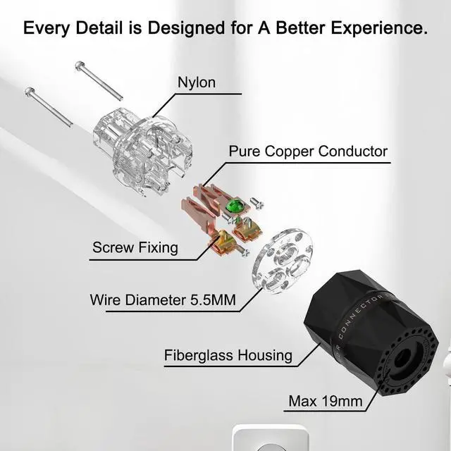 ^^ The Viborg HiFi power connector accommodates cables from 6mm to 19mm and suitable wire up to. 8mm, making it compatible with a wide range of audio equipment. Additionally, it is PSE CE UL Rohs approved, ensuring that it meets the highest safety standards for electrical products. Plus, it comes with a 365-day return and refund warranty, so you can purchase it with peace of mind.