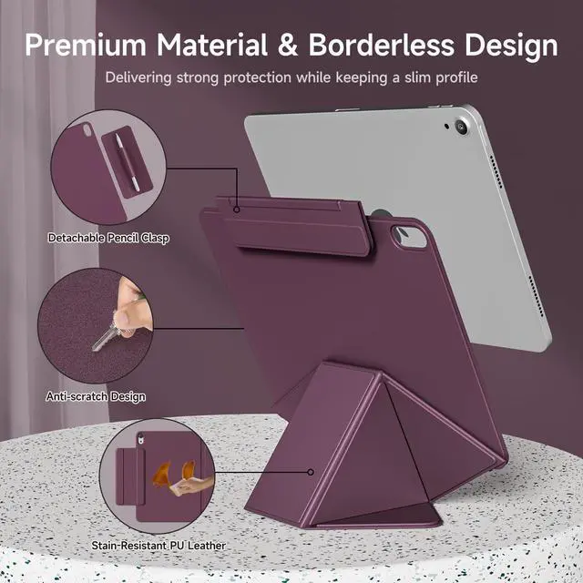 ^^ Strong Magnetic Design: The built-in powerful magnet case can firmly hold your tablet to ensure safe daily use and prevent it from falling off. The magnetic structure not only folds into a stable stand for daily needslike watching videos or typing, but also lets your tablet attach to any ferromagnetic surface (e. g., refrigerators). This unlocks more convenient ways to use your device. ^^ Detachable Clasp with Pencil slot&