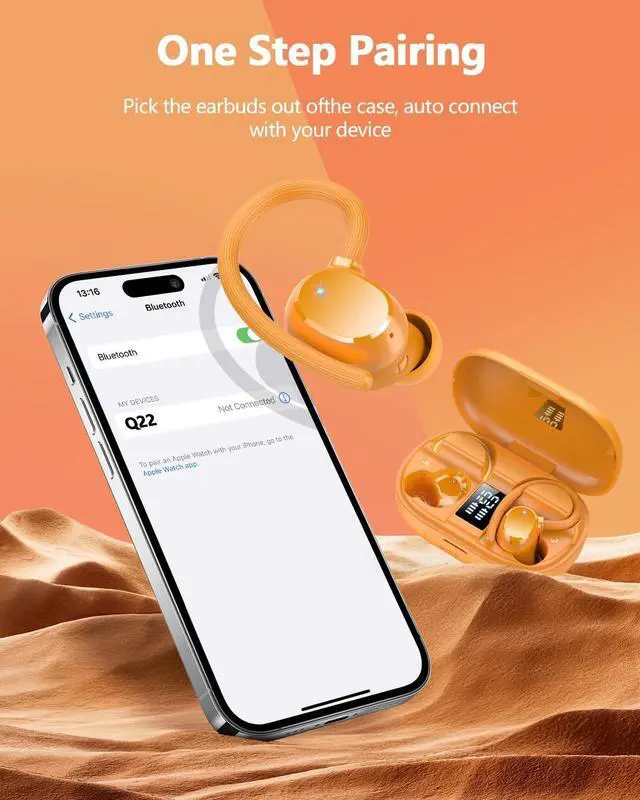 DESIGNED FOR SPORTS: Q22 sport earbuds are ergonomically designed, weighing only 6 grams, lightweight and comfortable to wear, the flexible earhooks ensure that extreme sports and other outdoor activities are safe and secure, equipped with three different sizes of silicone earbuds, fit perfectly into the ear canal, won't squeeze your ears, and won't be fatigued or sore after long hours of wear, giving you comfort from the inside out. Ipx7 rated waterproof to withstand common splashes and rain, don't worry about sweat or water damaging your sports headphones; Common splashes and rain, no need to worry about sweat or water damaging your over the ear earbuds ^^