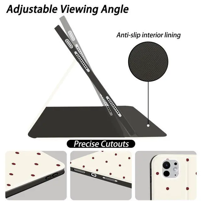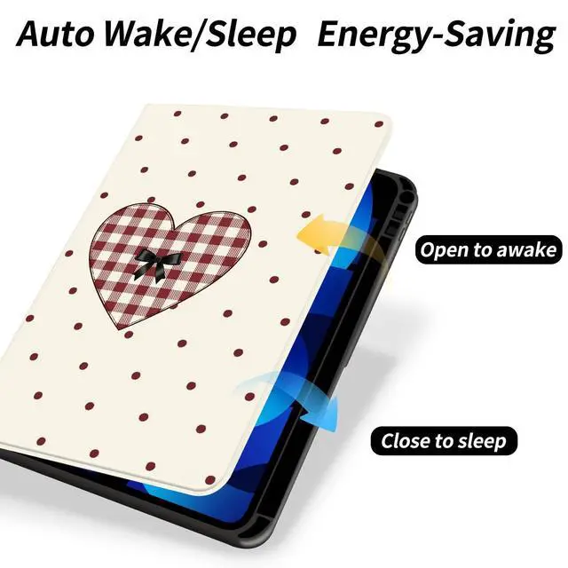 This cute polka dot case with pencil holder designed for iPad Air M2/M3(2024/2025), 11 Inch/iPad Air 4/Air 5 10.9 Inch.