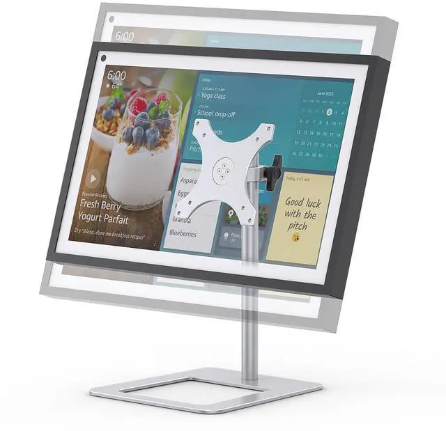 (The stand can be tilted 18 when NOT at its highest position) ^^ DURABLE CONSTRUCTION. The Show 15.6" mounting bracket features a large base and stable pole, constructed with aluminum material to keep the Show 15 safe and stable. Anti-slip silicone pads protect the desktop and the device ^^ EASY INSTALLATION. Attach the 7.2 x 7.7" trapezoidal base to the mounting pole, then connect the VESA plate to the show 15.6" smart display. All installed hardware is included in the box