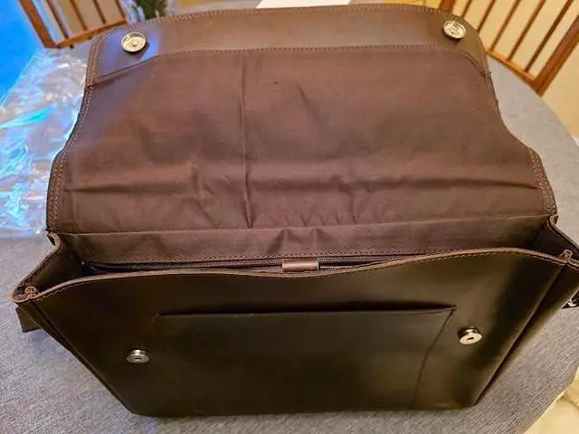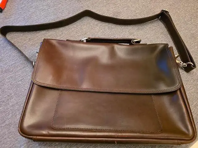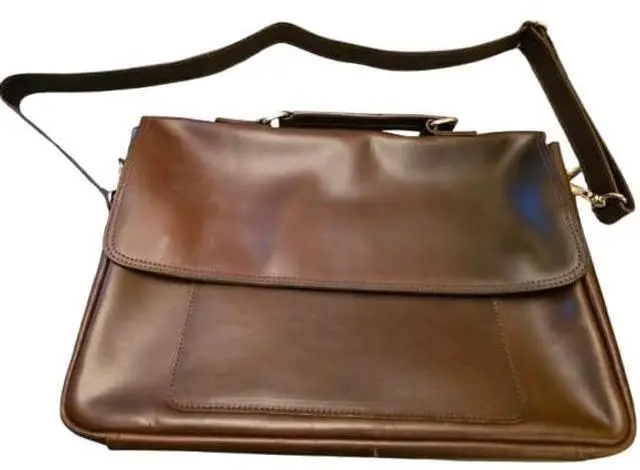 DescriptionElevate your professional style with this sophisticated full-grain leather briefcase. Masterfully handcrafted to blend timeless design with modern functionality, this laptop bag comfortably accommodates up to a 15.6 -inch laptop while offering multiple compartments for efficient organization of your daily essentials. The premium brass hardware adds a touch of elegance and ensures lasting durability. The briefcase's thoughtful design features ample storage space for documents, electronics, and business accessories, making it perfect for the modern professional. Whether heading to important meetings or daily office commutes, this leather briefcase makes a lasting impression while keeping your belongings secure and organized.