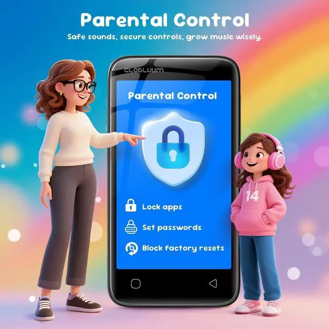 Safe listening for kids: no browser and no extra apps; closed Android 14 system with parental controls keeps kids focused on music and stories ^^ Kids' music, ready