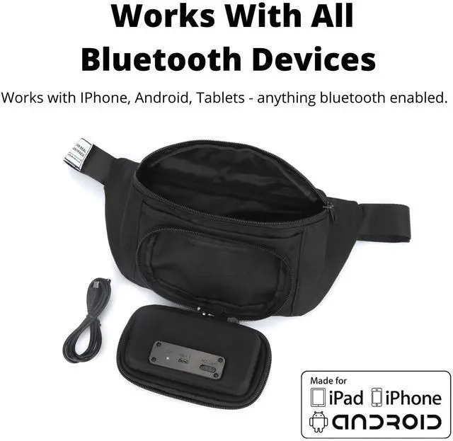 Tablet: Cute fannypack + speakers combine to deliver powerful, full-bodied sound that lasts for 4+ hours. Works with iPhone and Android devices seamlessly.