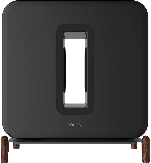 the black walnut color is suit for all of color from echo studio, more places and occasions. the metal frame is made of stainless with coating, not rust. ^^ 4, waterproof holder for speaker on floorwooden holder height is very suitable to support the Sonos Sub 4 speaker, avoide the erosion by water on floor. Avoid the robotic vacuum cleaner hitting your sonos sub 4 and prevent people from accidentally kicking your sub 4 while walking. ^^ 5compatibility for compatible for Sonos Sub 2, Sonos Sub 3, Sonos Sub 4.