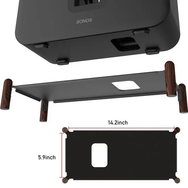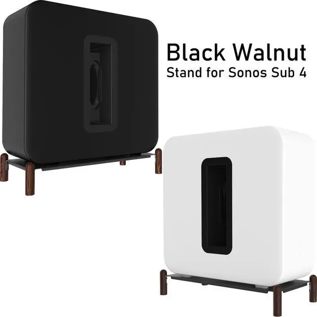 1, Compatibilitysolid wood stand applicable for Sonos Sub 4 black and white model, make the sonos sub 4 speaker to stay on the wooden mount, don't worry about slip off and fall out in using. ^^ 2, Unique Designthe metal frame accessories strength is sufficient, it's hard to deform after have tested for may times. The wooden stand with right size can match sonso sub 4 better. it's good for sound and easy to install. but not take much space. ^^ 3, Black WalnutThe wood stand is made of walnut from North America, it's 100% real wood with coating.