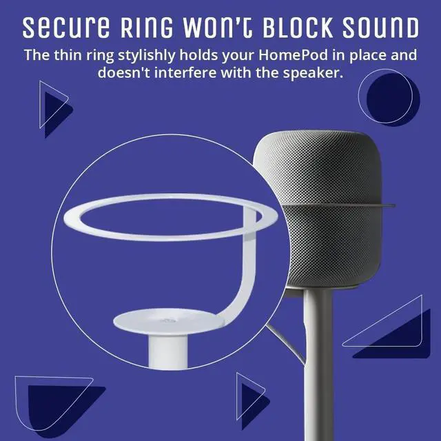 Its sleek black finish complements your decor in a living room, studio, or home office. e. ^^ SECURE & UNOBSTRUCTIVE HOLD A precision-fit support ring keeps your HomePod stable without blocking sound or sensors. The non-slip base provides extra balance, ensuring crystal-clear audio performance and peace of mind for your investment. ^^ EASY ASSEMBLY & DURABILITY Assemble your HomePod floor stand in minutes with the included Allen key and hardwareno tools required. The heavy-duty steel construction guarantees long-lasting stability, while the compact base saves space in any environment.